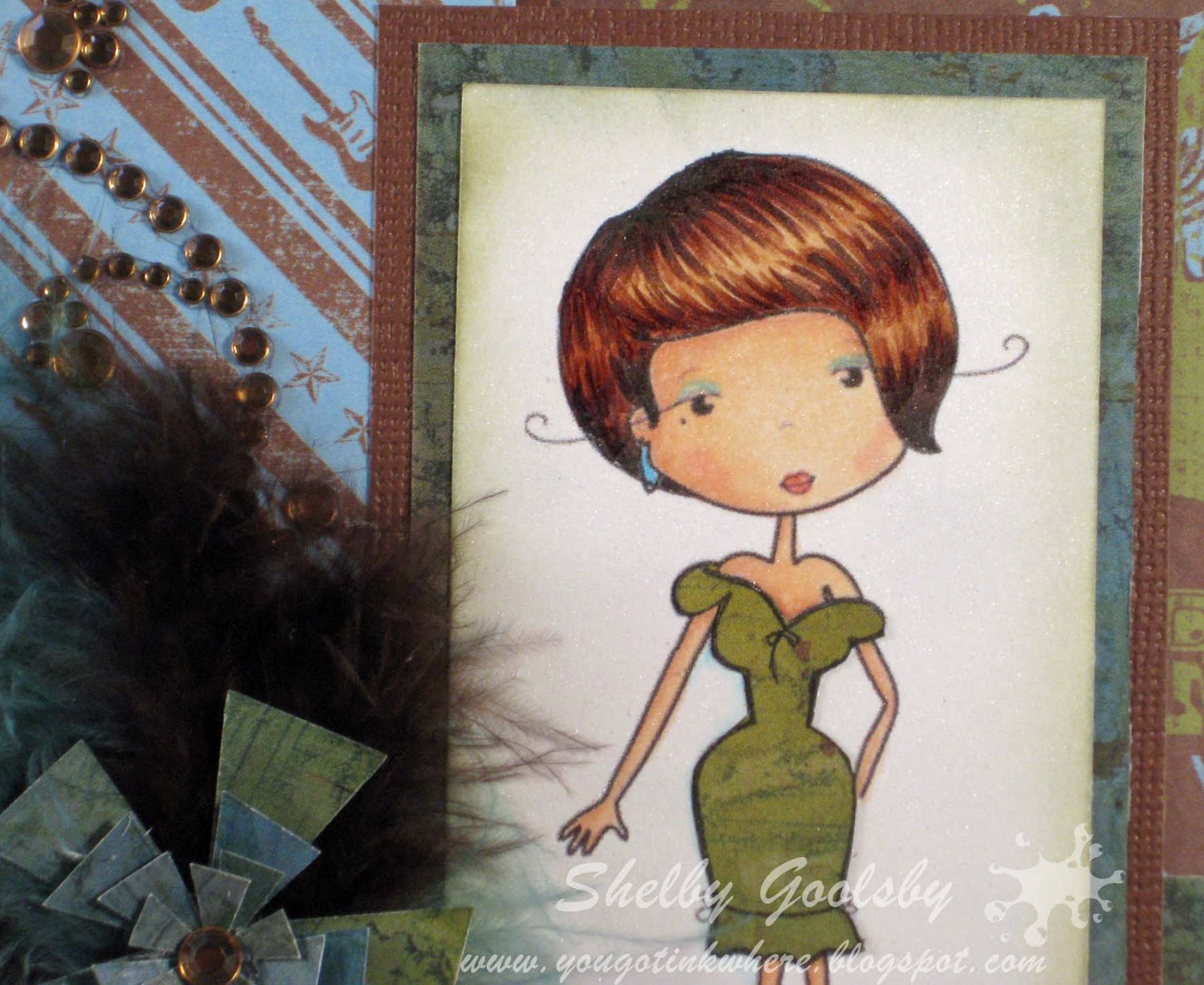 Oh, she looks so sophisticated! Love the papers and embellies you've used with her Shelby, fabulous card!
